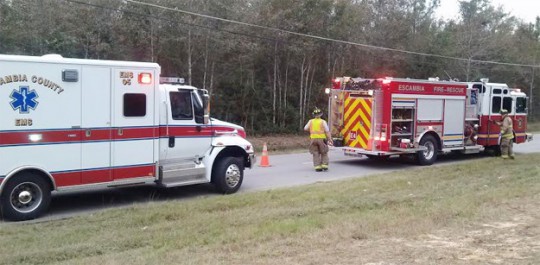 Pictured: A Cantonment teeen was killed in a single vehicle crash Thursday afternoon on Well Line Road near the Cantonment Ballpark. NorthEcambia.com photo by Kristi Smith, click to enlarge.