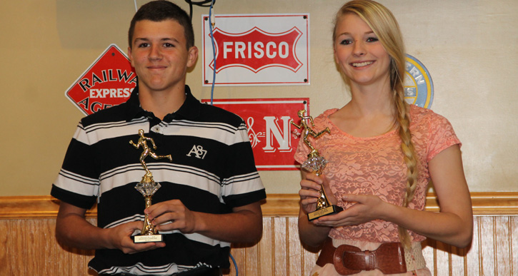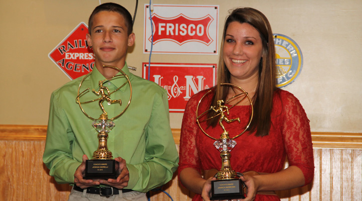 Pictured top: Fastest boy Brandon Korinchak and Fastest girl Moriah McGahan. Pictured inset: Jim Ross Memorial Award winner Dakota Craft. Pictured below: Coach’s Award winners Joshua Borelli and Jessica Barrow. NorthEscambia.com photos, click to enlarge.