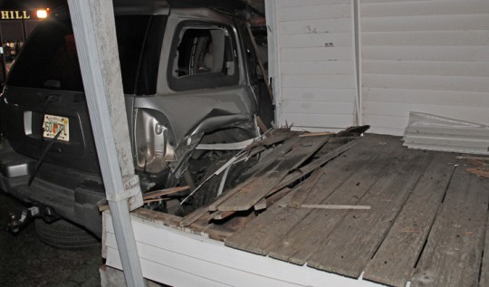 The impact pushed a portion the older wood frame house about 10-12 inches off its foundation piers.