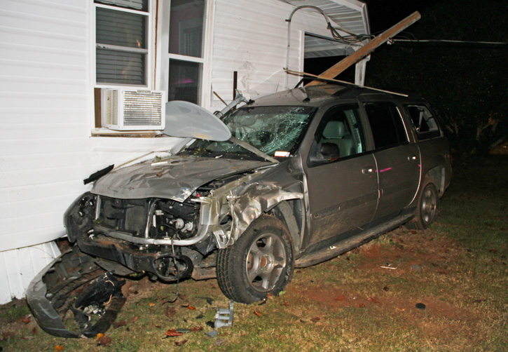 The driver told first responders that he was headed north on Highway 97, his cruise control set at 61 mph, when he fell asleep and left the roadway. He then struck a culvert, with his Chevrolet Trailblazer going airborne for about 90 feet. The vehicle then continued sideways at a high rate of speed, striking a tree and then a house located just south of West Highway 4.