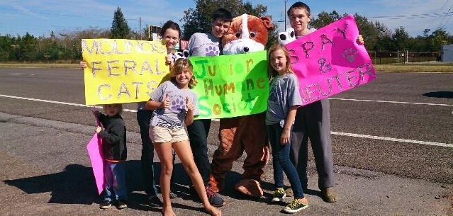 Members of the Junior Humane Society were out in Molino Saturday raising funds to spay and neuter a feral cat colony that lives behind the Dollar General in Molino.