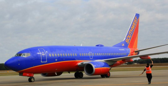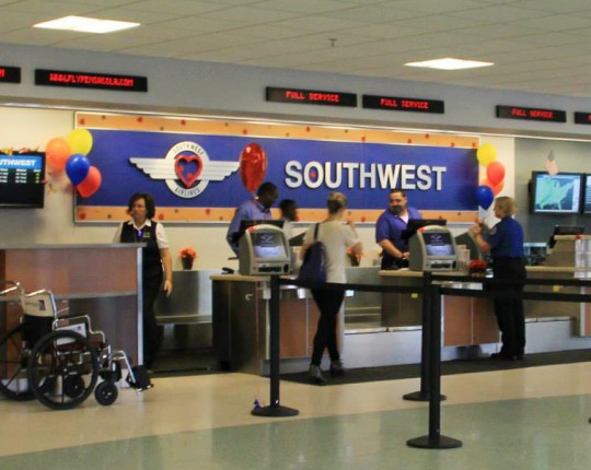 On Monday the first weekday arrival of a Southwest jet was followed by a celebration and news conference in the departing gate area.