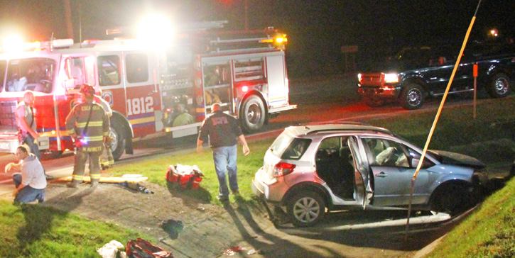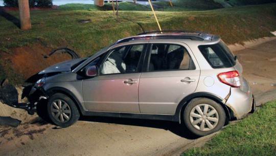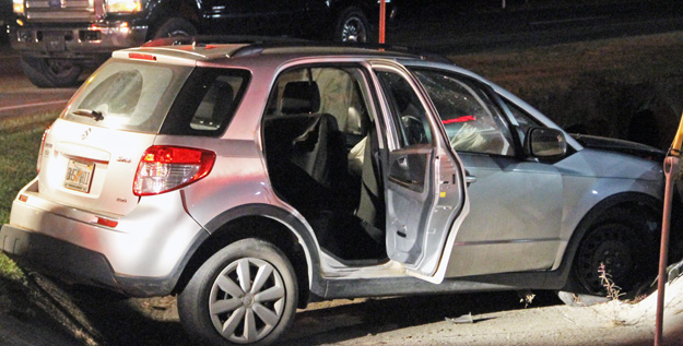 Three people were in a Suzuki SX4 that crashed into a culvert just before 10:30 p.m. One person was transported to an area hospital by ambulance, while two people refused treatment at the scene.