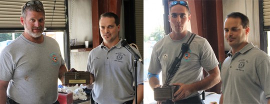 Pictured top Representative of Genesis Rail System receive the Walnut Hill Fire Department Community Service Award Saturday. Pictured bottom: Walnut Hill Fire Department Officer of the Kevin Mininger, District Chief Christ Brown, Firefighter of the Year Jeffrey Huber, Brown. NorthEscambia.com photos, click to enlarge.