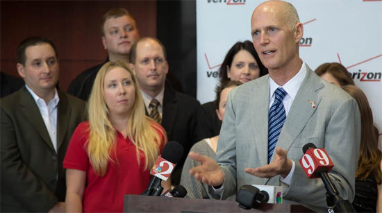 Pictured top: Gov. Rick Scott announces the latest Florida unemployment data Friday morning in Lake Mary, FL. Photo for NorthEscambia.com, click to enlarge.