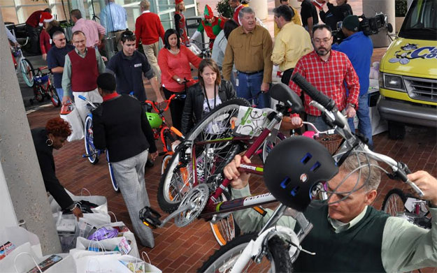 The Communities Caring at Christmas caravan streamed into the Gulf Power Company headquarters on Friday and collected hundreds of toys, bikes and other gifts — all donated by Gulf Power employees.