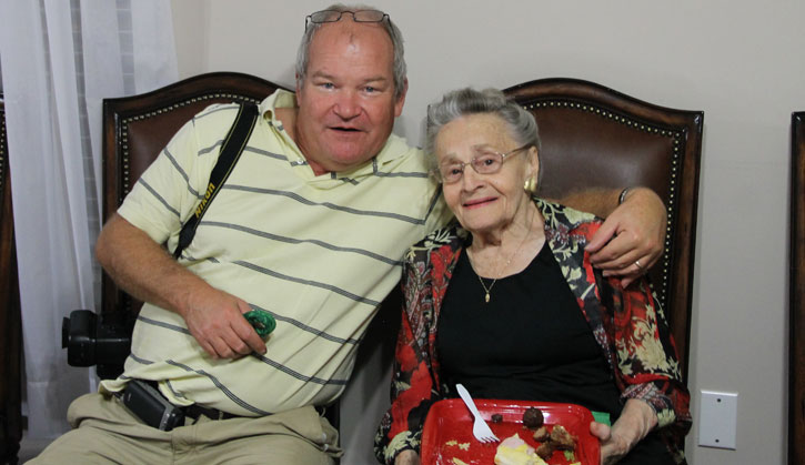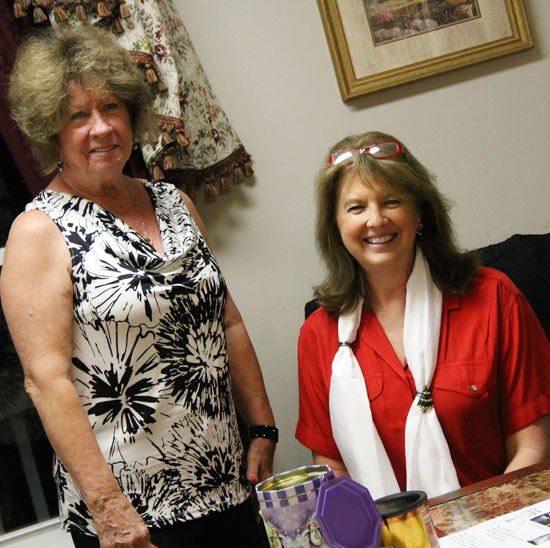 Pictured top: Tri-City Ledger Publisher Joe Thomas and Lina Showalter enjoyed the refreshments at the annual Century Chamber of Commerce Christmas Open House Thursday afternoon. Pictured inset: Margie McCall (left) and the chamber’s newly hired Economic Development Coordinator Cindy Anderson. NorthEscambia.com photos, click to enlarge.