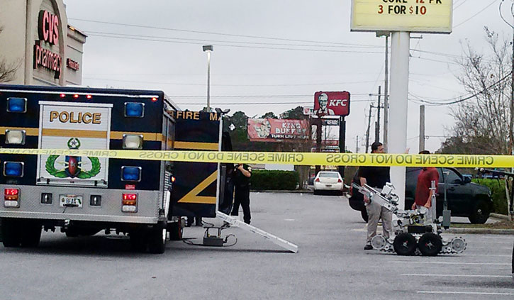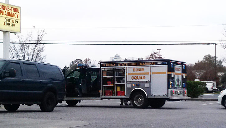 Pictured: The Florida State Fire Marshal’s Bomb Squad investigates a device at CVS on Palafox at Nine Mile Road Thursday afternoon. NorthEscambia.com photos by Kristi Smith, click to enlarge.