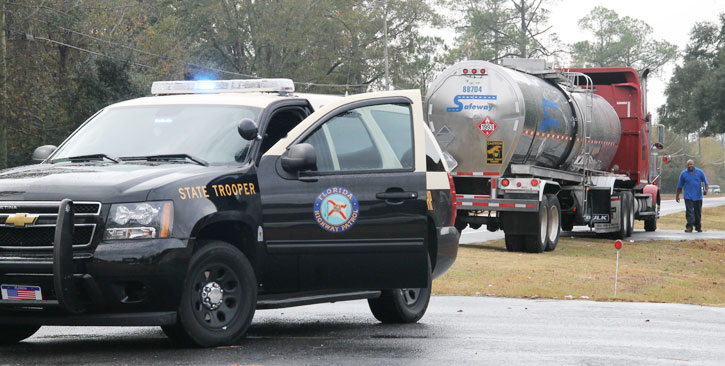 The elderly male driver of a Ford Fusion was stopped at stop sign on Old Flomaton Road at East Highway 4 in Century when he pulled forward into the path of an 18-wheeler, according to the Florida Highway Patrol. Witnesses said the driver of the 18-wheeler swerved into the oncoming lane of Highway 4 in an attempt to avoid a collision, but the trailer tires hit the car.