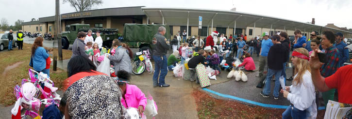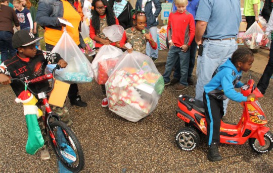 Dozens of children received new bicycles and helmets, clothes, shoes and lots of toys. About 75 bikers took part in the event with stops at Bratt Elementary,the Flomaton Fire Department and Atmore City Hall.