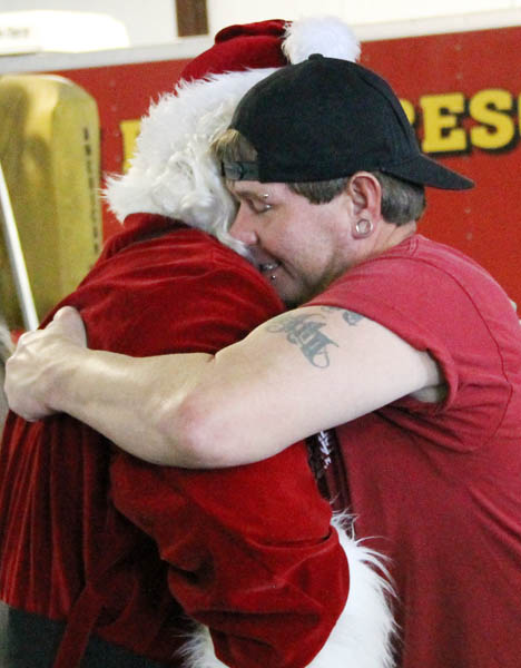 Pictured: Children receive Christmas gifts Saturday morning in Atmore (top), Flomaton (below) and Bratt (bottom). Pictured inset: A parent thanks Santa Claus and the LA Bikers for providing Christmas presents. NorthEscambia.com photos, click to enlarge.