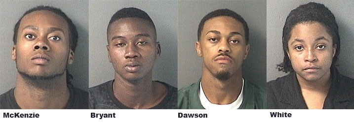 Garland David McKenzie, 20, Ke’Shawn Denzel Bryant, 18, Leviticus Al Deonte Dawson, 20, Antoinette Danielle White, 22, and juvenile John David Murphy are facing a long list of felony charges including armed burglary, grand theft and criminal mischief. McKenzie, Bryant, Dawson and Murphy are also charged with felony animal cruelty — causing the cruel death pain and suffering of an animal.