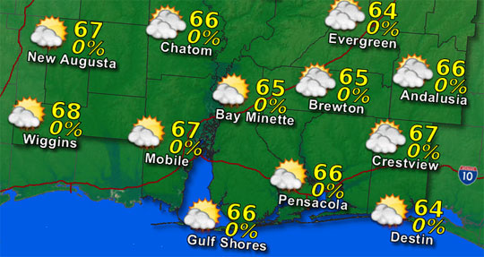 - Monday: A 30 percent chance of showers. Mostly cloudy, with a high near 67. Calm wind becoming west around 5 mph in the morning.
