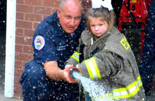 Students learn fire safety at the Cantonment fire station.