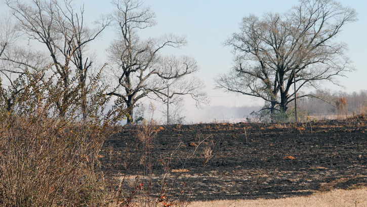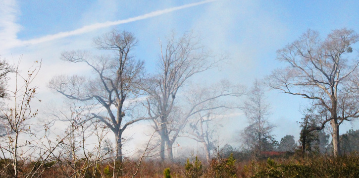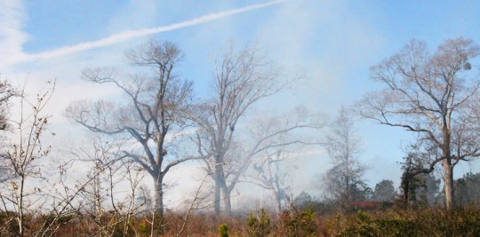 Pictured: A wildfire consumed about 10 acres off Garrett and Pine Forest roads Monday morning. NorthEscambia.com photos, click to enlarge.