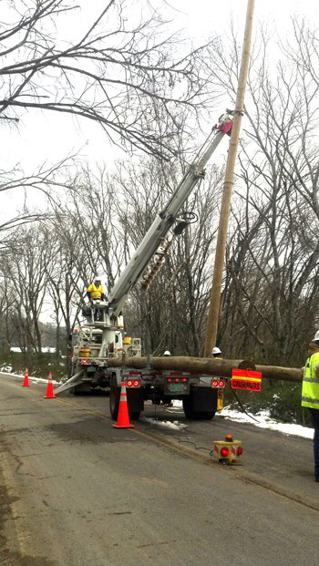 Pictured: Gulf Power crew works to restore power after a snowstorm last winter near Hot Springs, Arkansas. File photos, click to enlarge.