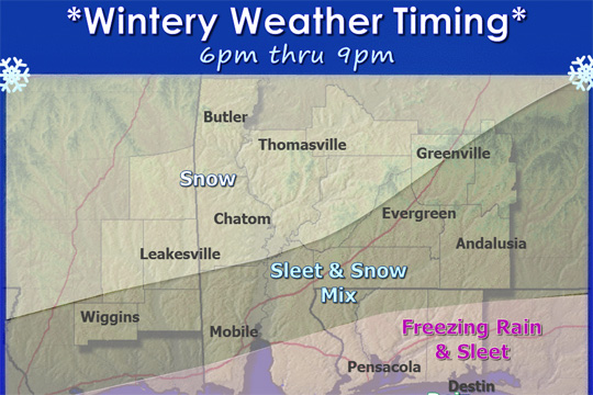 A Winter Storm Warning is in effect for the entire area. Here is your official North Escambia area forecast: