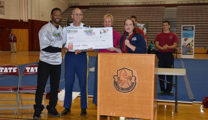 A former Super Bowl winner was at Tate High School Friday afternoon, celebrating a culture of wellness as the school received a large cash donation.