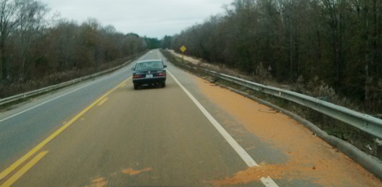 Pictured top: Sand along Quintette Road and the bridges Saturday morning. NorthEscambia.com photo by Kristi Smith, click to enlarge.
