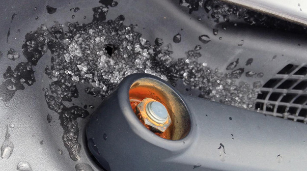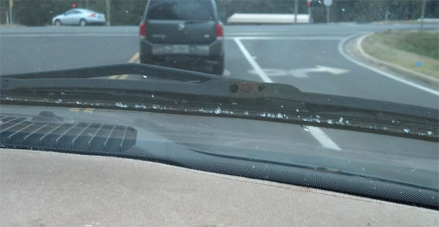 A small sleet accumulation on a car off Pine Forest Road, from Susie White.