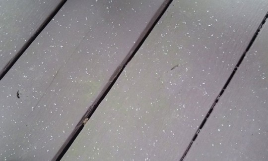 Sleet accumulation on a deck in Cottage Hill, from Kristi Smith.