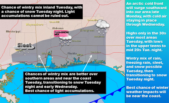 winter storm watch is in effect from Tuesday morning through Wednesday morning. Here is your official North Escambia area forecast: