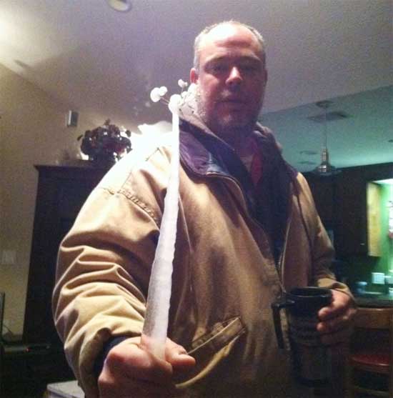 Above: We saved this one for last. Seems that Rodney Colvin of Molino brought his wife Jennifer an “ice flower” from outside this morning. We are hoping to see how he tops this for Valentines Day.