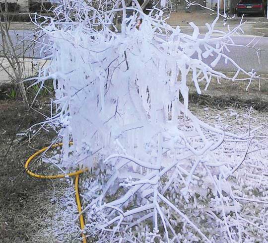 With lows in the middle teens, there were some interesting photo opportunities around the North Escambia (Florida) area this morning. Like, pictured above, this tree on Highway 164 in Walnut Hill. (Courtesy Brandy White)