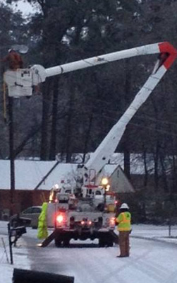 The crews left February 10, donned snow chains, and worked in Jonesboro, Ga., just south of Atlanta most of the week. Over the weekend, they went east to Waynesboro, Ga., to help complete restoration. Georgia Power restored power to more than 700,000 customers.