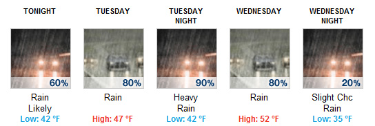 Cold Rain Tuesday Night, Wednesday