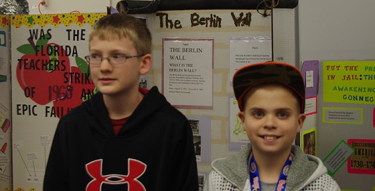 The History Fair in the school’s gym capped off a project in which EWMS students were required to do research into a topic. The research was presented in exhibit form, much like the typical science fair, or as a drama or web presentation. Students complete projects either individually or in teams.