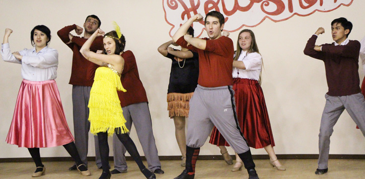 “Good News” takes place on the campus of Tait College. This musical tells the tale of the star football player who will not be allowed to play in the big game due to failing an exam, and it is up to the new teacher to decide if he will be given a second chance to pass. Popular songs include “You’re the Cream in my Coffee”, “Life is Just a Bowl of Cherries” and the popular dance number “Varsity Drag”.