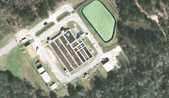 Pictured: An aerial view of the Century Waste Water Treatment Facility just off Jefferson Avenue. Courtesy image for NorthEscambia.com click to enlarge.