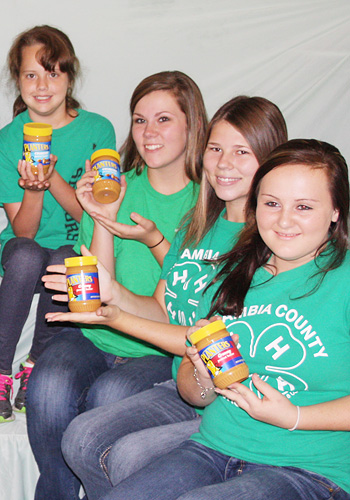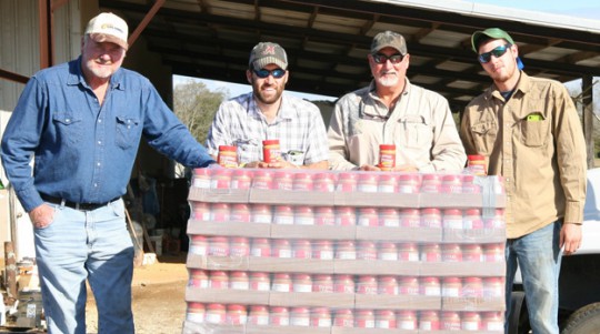Pictured top: Escambia County peanut growers Helton Brothers Farm donated a pallet of peanut butter and asked local buying point Tri County Peanut to do the same for the Florida Peanut Butter Challenge. Shown are (L-R) Michael Helton, Bo Gideons, Rodney Helton and Adam Respress. Pictured inset: Escambia County 4-H members collected peanut butter for the drive, including members of the Barrineau Park 4-H Club (below). Pictured bottom. Tri County Peanut Butter purchased pallet of peanut butter for the drive. Courtesy photos for NorthEscambia.com, click to enlarge.