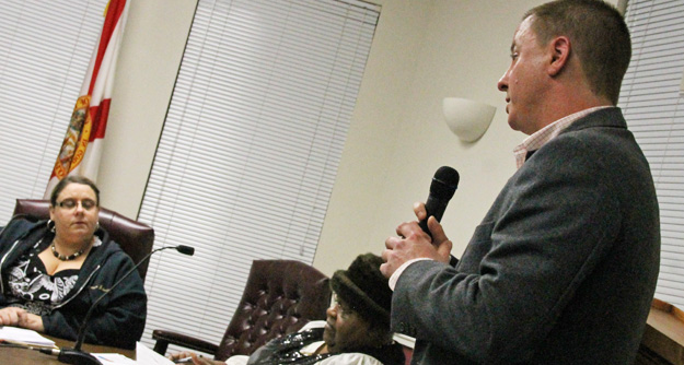 Pictured top: Brice Harris of the Haas Center updates the Century Town Council Monday night. NorthEscambia.com photo, click to enlarge.