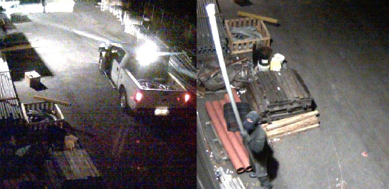 The suspects cut a hole in a fence and where caught on video as they proceeded to destroy a light fixture and then back a white four door truck in toe the storage area.