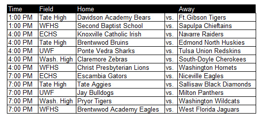 “I feel that our tournament is one of the best in the country. It takes a lot of people to put an event of this magnitude on and I am truly thankful for everyone’s assistance,” said Greg Blackmon, Tate Aggies head coach. “The venues for the games have been improved thanks to the University of West Florida. Teams are coming from great distances, as well as our local teams, and I’m looking forward to a great week of competition.”