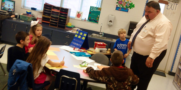 Pictured: Century Correctional Institution Officer Tony deGraaf and Assistant Warden Hutchins (in tie) read to a kindergarten class at Jay Elementary School. Submitted photos for NorthEscambia.com, click to enlarge.