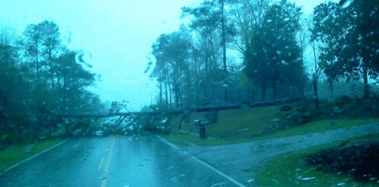 Scattered power outages were reported Frodau morning by both Gulf Power Company and Escambia River Electric Cooperative. Most of the outages were small, impacting just a few customers each. Pictured above: A tree down across power lines and Molino Road near Highway 99 that caused an estimated six Gulf Power customers to lose power. Submitted photo by Tom Dickson for NorthEscambia.com, click to enlarge.