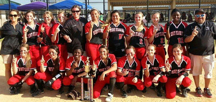 The West Florida Lady Jags won the Third Annual Daytona Beach Slam recently. The Lady Jags went 4-0 in the tournament and remain undefeated on the season. Pictured: (front, L-R) Kayla Miller, Jasmyn Nguyen, Nachelle Watson, Korina Rosario, Kristin Gunter, Emily Loring, Lauren Carnley, (back) Coach Angie Johnson, Maegan Freeman, Ali Cutaio, Farrah Nicholas, Head Coach Jessica Smith, Jordaine Watkins, Manager Kathleen Smiley, Breana Rogers, Danyelle Black, Jibrasha Moore and Coach Gary Jackson. Submitted photo for NorthEscambia.com, click to enlarge.