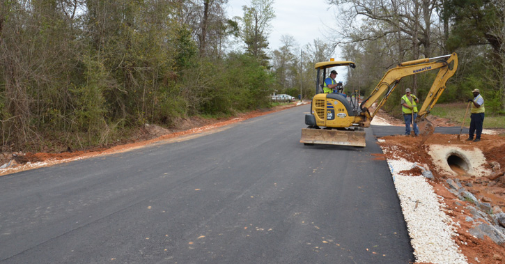 An Escambia County dirt road paving project is near completion in “Old Molino”.