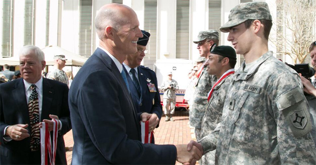 After awarding more than 50 service medals to veterans during a National Guard Day event in the Capitol courtyard on Tuesday, Scott, a Navy veteran, pledged to sign into law the “Florida GI Bill,” modeled after the World War II-era program.