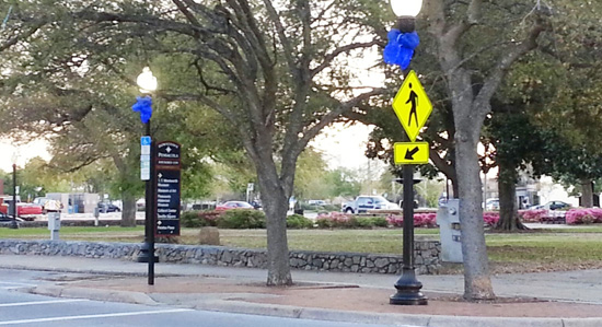 Blue bows are up along Palafox Street in downtown to raise awareness for Child Abuse Prevention month.