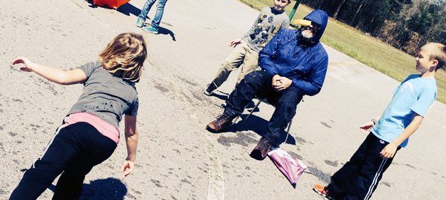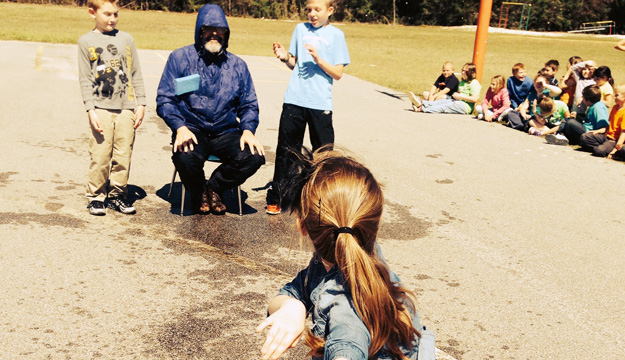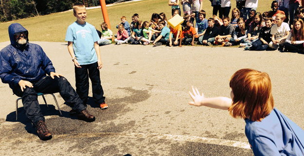 Pictured: Kindergarten students “sponge” Jim Allen Elementary School music teacher Greg Sexton. Submitted photos for NorthEscambia.com, click to enlarge.