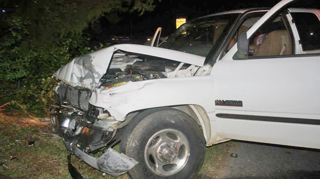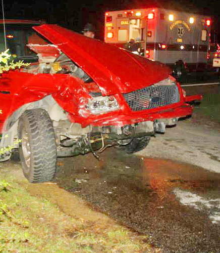 Pictured: Two people were injured in this two vehicle accident Saturday night on Muscogee Road. NorthEscambia.com photos by Kristi Smith, click to enlarge.