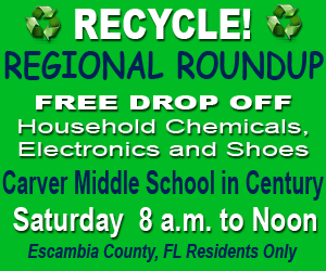 For more information about Regional Roundup events, proper disposal of waste or to make an appointment for a business electronics drop-off, contact the Escambia County Department of Solid Waste Management, 850-937-2160.