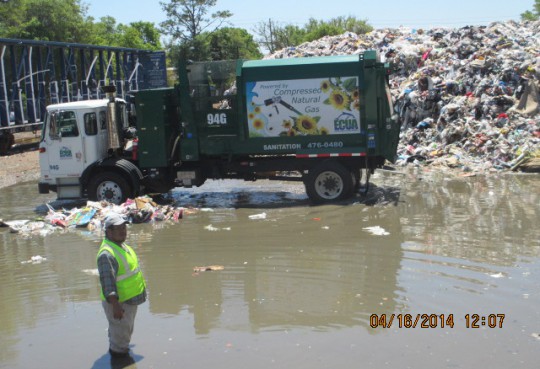 Pictured: Standing water at West Florida Recycling on April 16 in a photo provided by the company.