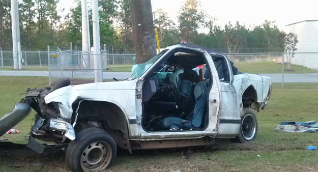 The accident was reported near the intersection of Peartree Drive about 7:18 p.m. The driver of a pickup truck lost control and struck a utility pole. He was transported by ambulance to an area hospital with injuries that were not life threatening.
