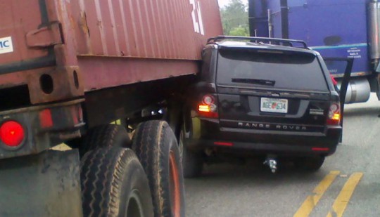 Exact details on how the accident happened have not yet been released, but the driver’s side of a Range Rover came to rest under the trailer of an 18-wheeler. There were only minor injuries in the accident at Fannie Road and Highway 31.