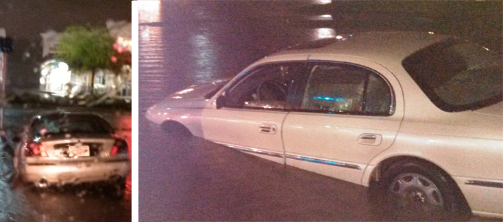 Pictured top: cars partially submerged in the parking lot of Ensley Walmart on Pensacola Boulevard Monday night. Reader submitted photos, click to enlarge.